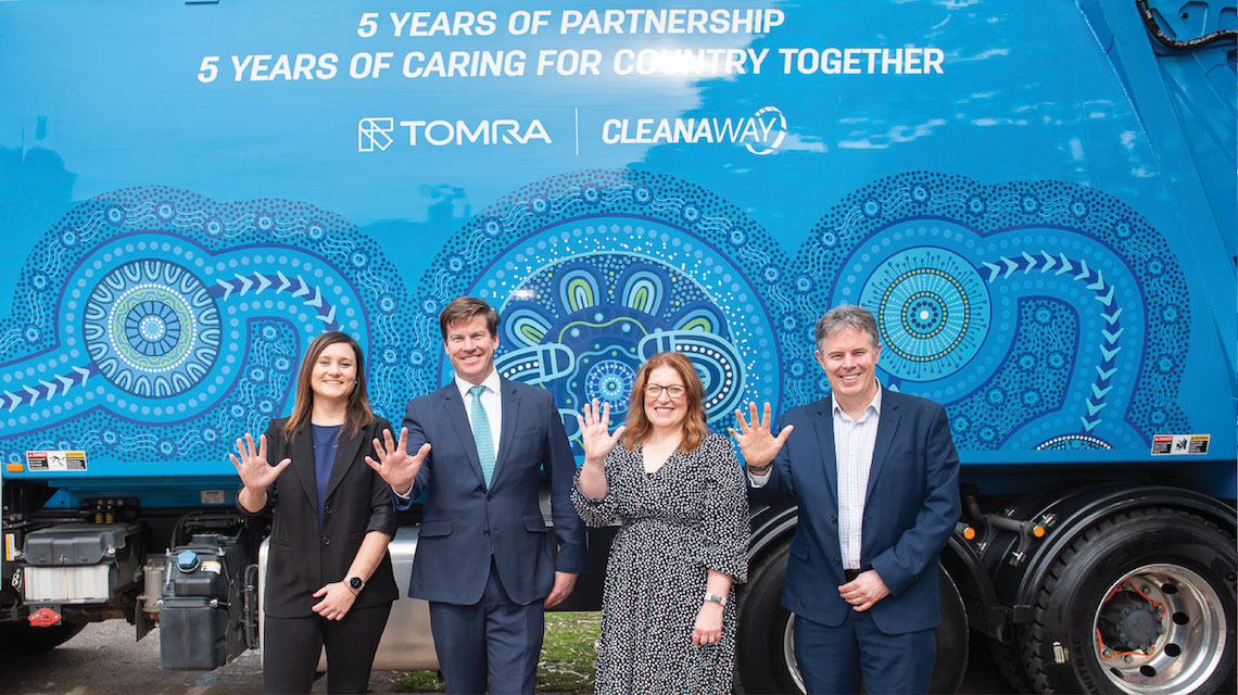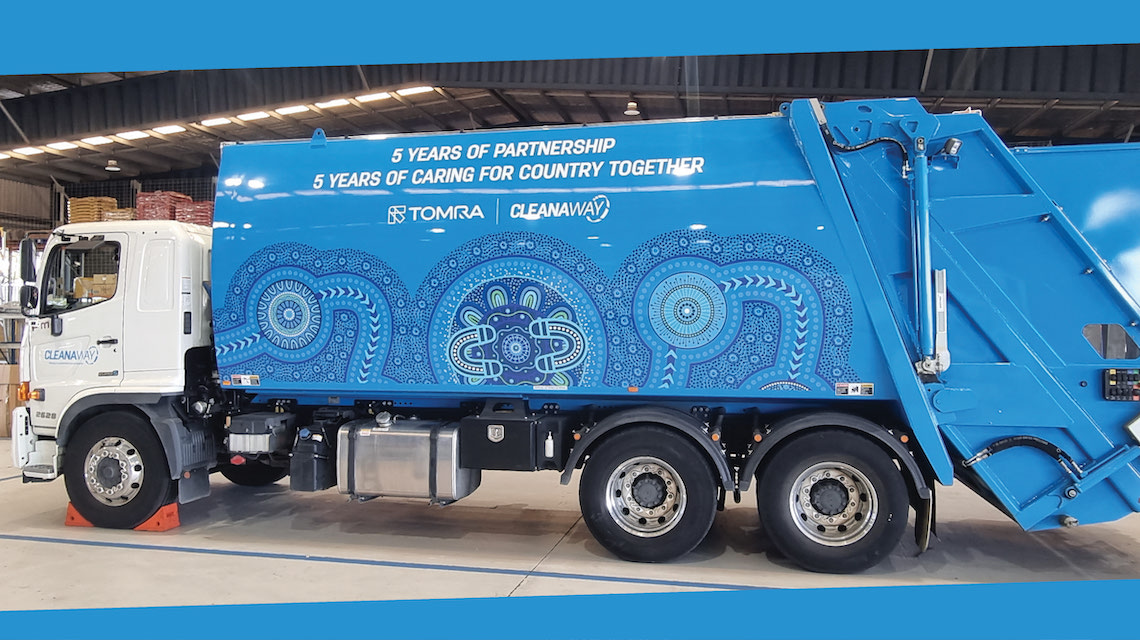 The motif at centre of the artwork represents TOMRA Cleanaway and the successful joint venture partnership over the past 5 years of operations.