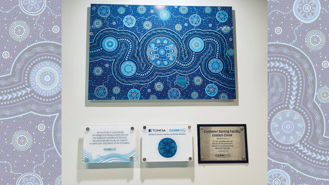 The artwork titled “Caring for Country Together” is a visual representation of TOMRA Cleanaway working in partnership with communities across NSW as the proud network operator for NSW’s container deposit scheme, Return and Earn.